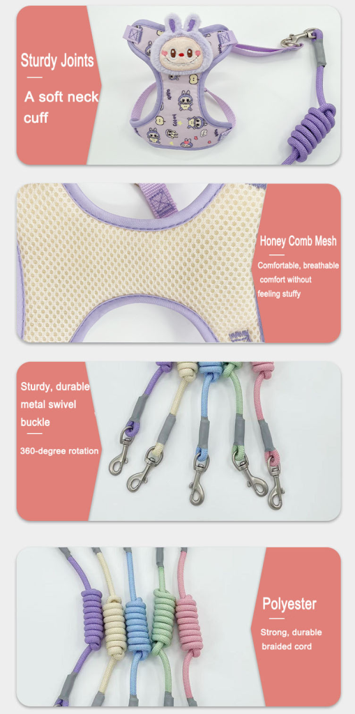 - Type: Labub Dog Harness with Leash for Small Dog